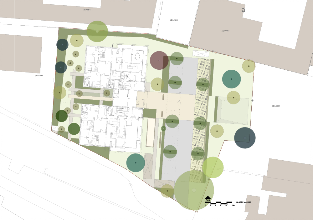 - réhabiliter un édifice en centre-ville pour une meilleure intégration à son environnement : stationnements, entrées, nature du rapport au sol, gestion des eaux pluviales, végétalisation etc.