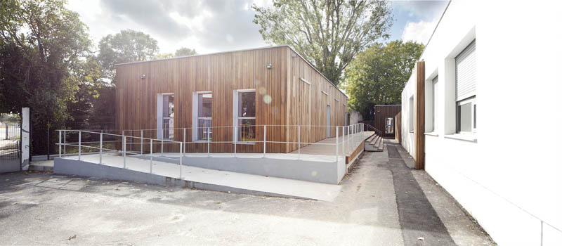 Le lycée François Mauriac voit son effectif augmenter depuis plusieurs années. Le projet permet de créer 4 salles de classes supplémentaires et un bloc sanitaire. Face à l’impératif de livraison, qui doit permettre les rentrées opérationnelles de 2016 et 2017, nous choisissons de développer une solution de construction préfabriquée en bois. Cela oblige à anticiper les coordinations techniques mais permet aussi de réduire le temps de présence sur chantier.